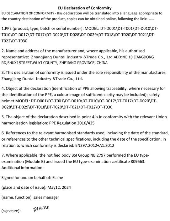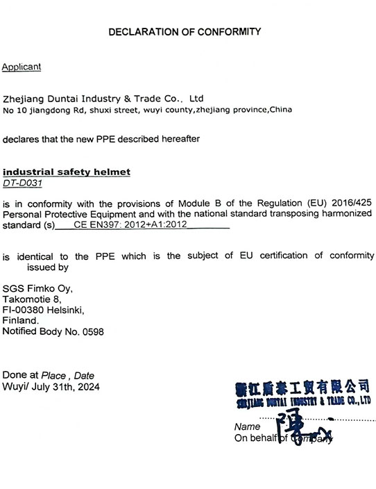 浙江盾泰工贸有限公司,是一家集研发、生产、销售、服务为一体的专业安全帽制造商、供应商。 我厂不仅拥有完善的数字管理系统和质量保障系统,且拥有国内外先进的生产设备、生产工艺及质量检测设备,产品均选用进口ABS、PE原